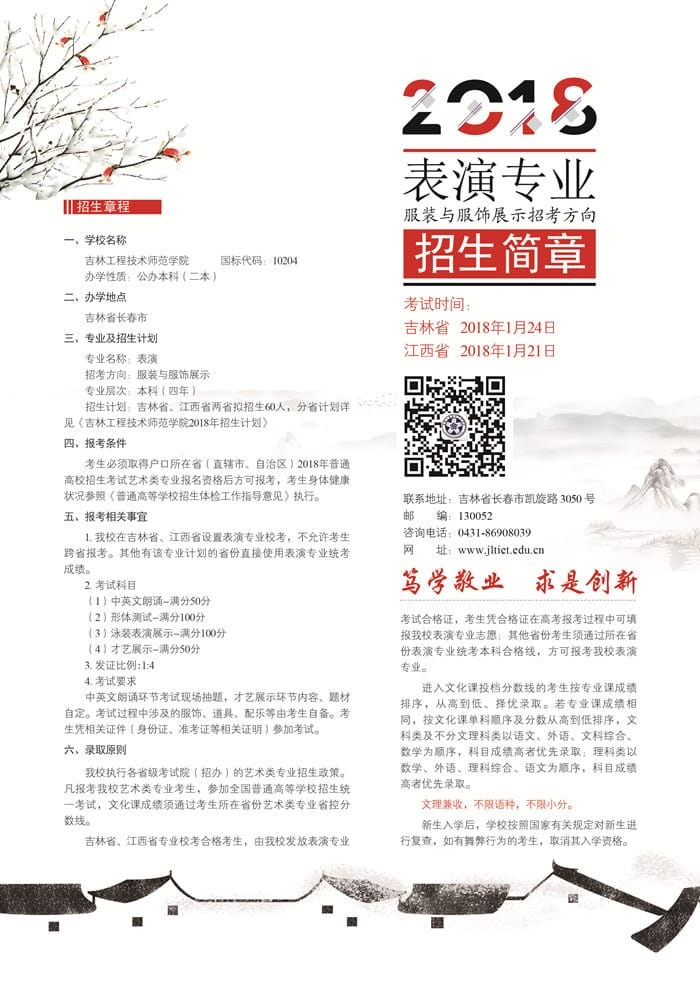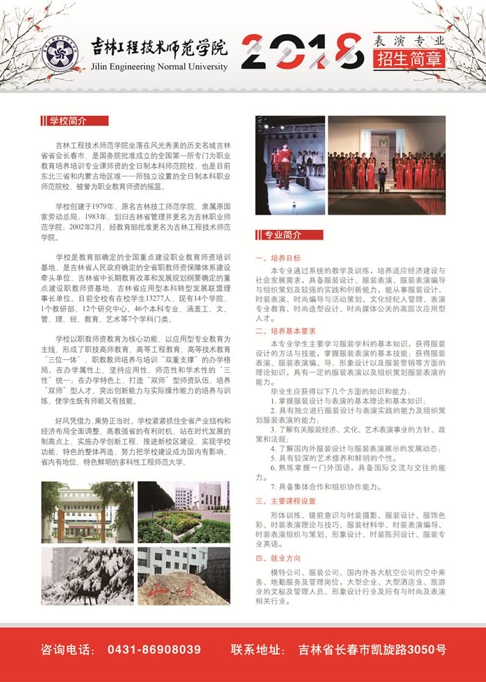 吉林工程技术师范学院2018年表演专业招生简章