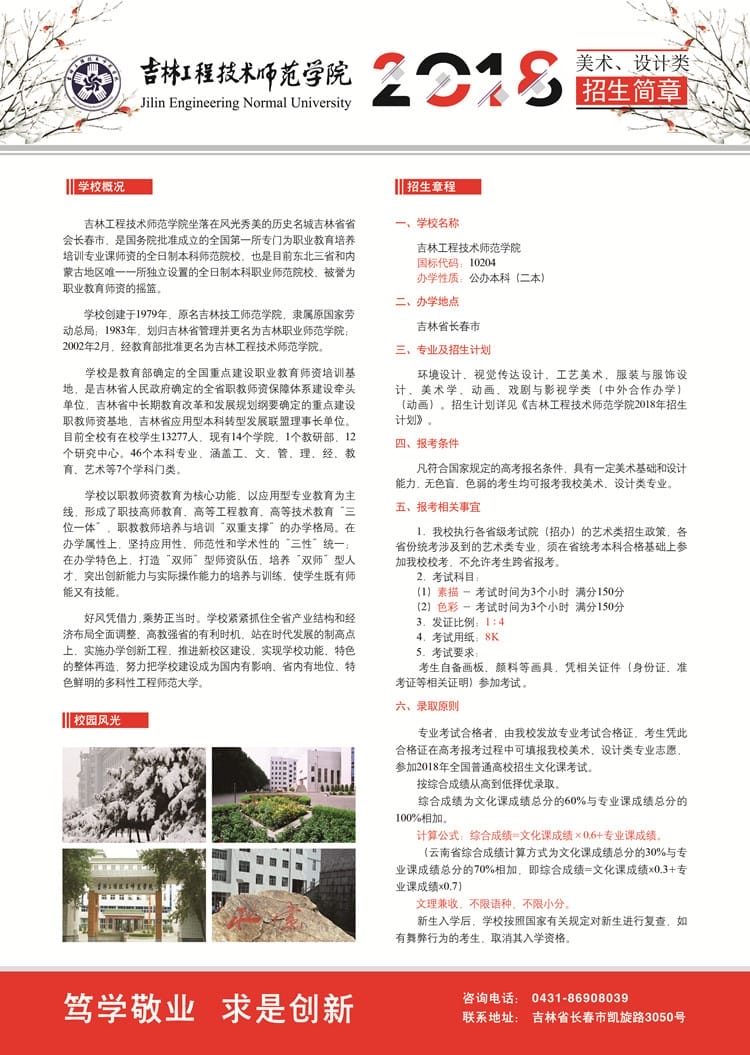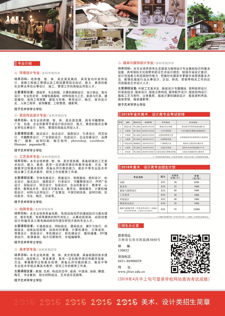 吉林工程技术师范学院2018年美术、设计类专业招生简章